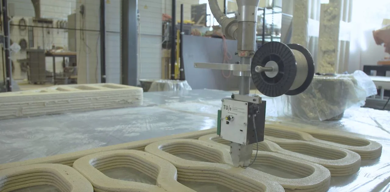 Most recently, a team of researchers from TU Eindhoven and construction group BAM infrastructure, joined forces to print a 26 foot long (8m) bicycle bridge in the Dutch province of Brabant. It took around 3 months for robots to print the concrete structures, which were placed in 800 layers, pre-stressed, and reinforced, according to dezeen.