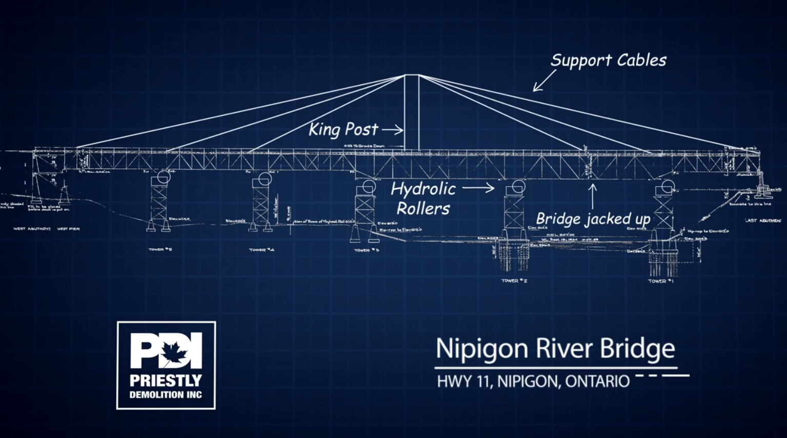 PDI is no stranger to planning and performing extremely well planned and executed demolition projects. One of our other favorite demolition videos came from them in 2015 when they demolished a highway overpass and completely cleaned up the road beneath in 10 hours. The company’s more recent demolition of the Nipigon River Bridge in Ontario, Canada did not afford them the luxury of performing the work from the ground, however, so they had to do some innovating.