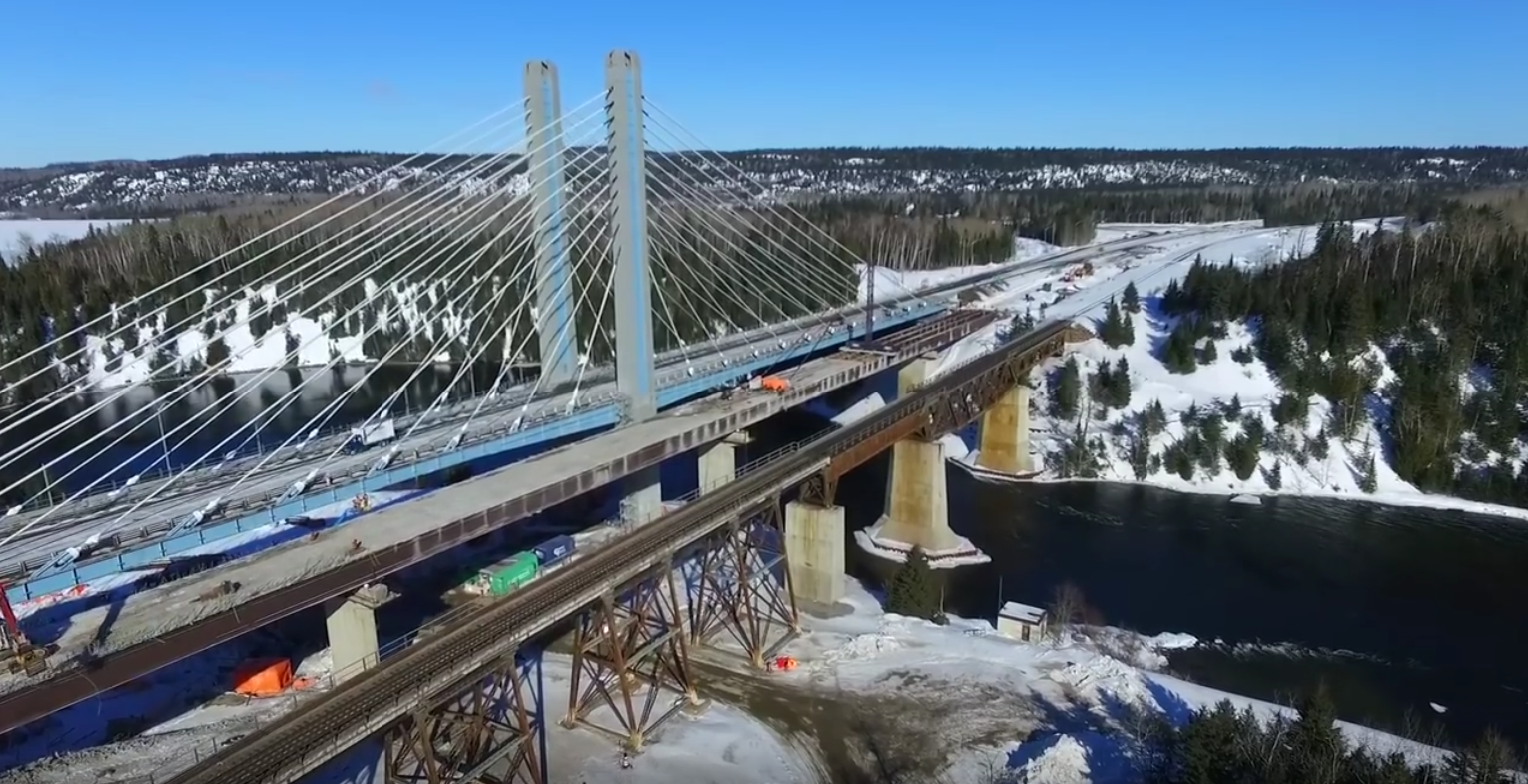 The original Nipigon River Bridge was constructed in 1937 as a simple steel deck truss bridge. 37 years later, in 1974, steel girders replaced the truss and it had remained the same ever since. In 2013, a $106 project was started that would replace the old bridge with a new 4 lane bridge and close down the old one. PDI was contracted as the demolition company responsible for removing the old bridge.