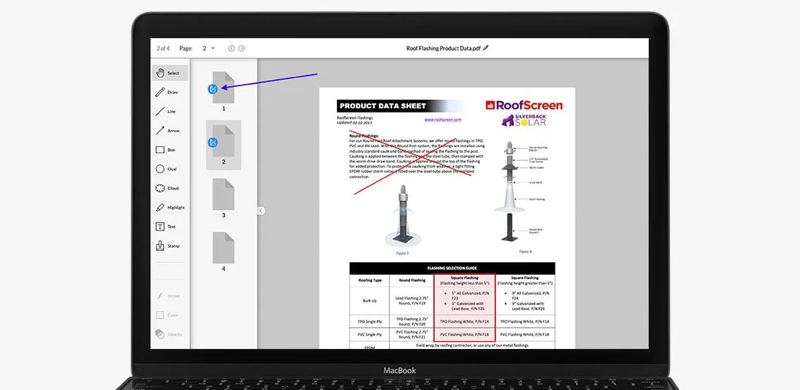 In addition to the markup tools and ease of markup, users are also able to upload a customizable company stamp, add a blank page to the front of the submittal for comments, and see an activity feed to track who added markups and when they were added.